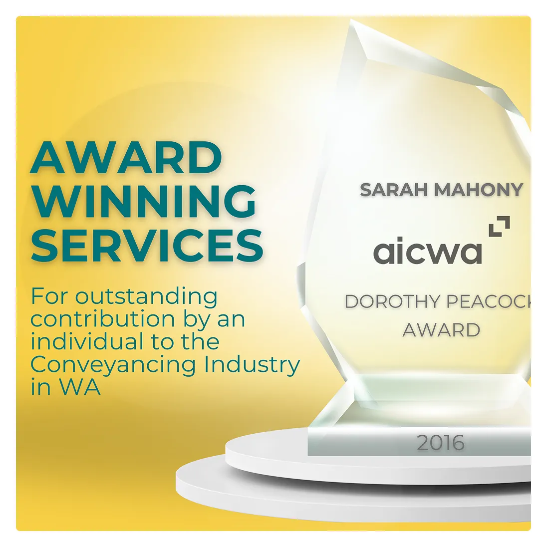 Multiple industry awards including the prestigious Betty Quelch Award recognise our excellence in conveyancing. We're not just experienced - we're officially recognised as among the best in WA